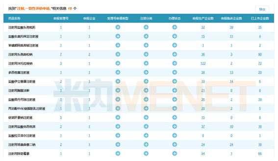 據(jù)米內網(wǎng)MED中國藥品審評數(shù)據(jù)庫2.0數(shù)據(jù),截至目前,除了已經通過一致性評價的注射用阿奇霉素,國家藥監(jiān)局還接收到化藥注射劑一致性評價申報29個,涉及14個品種、10家企業(yè)。