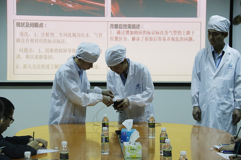 討論出火花,實(shí)踐出真知。固體制劑車(chē)間的表演可謂視亮點(diǎn)不斷,將班前會(huì)、流程圖、車(chē)間現(xiàn)場(chǎng)全部都搬到了會(huì)議廳,生動(dòng)有趣的給我們展示了“物品合理布局”對(duì)操作的合規(guī)性、合理性的意義。