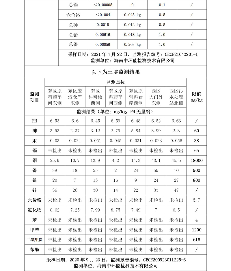 海南中和藥業(yè)--2021年??谑兄攸c(diǎn)排污單位環(huán)境信息公開表