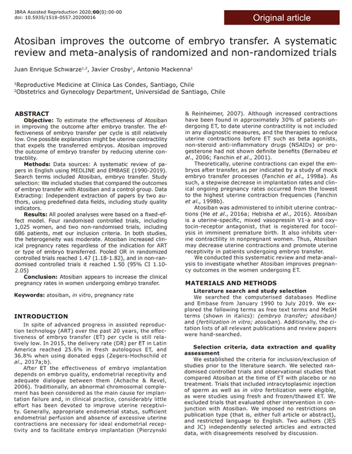 • 阿托西班改善胚胎移植結局的隨機和非隨機試驗的