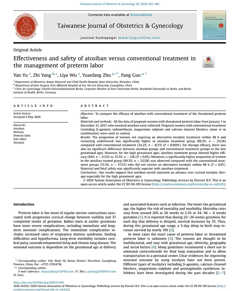 • 阿托西班與常規(guī)療法治療早產(chǎn)的有效性和安全性比